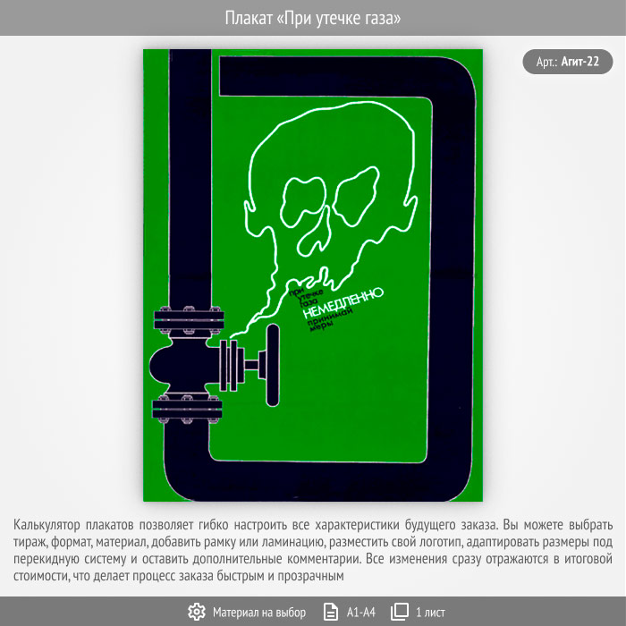 Плакат «При утечке газа» (Агит-22, 1 лист) в Великом Новгороде купить