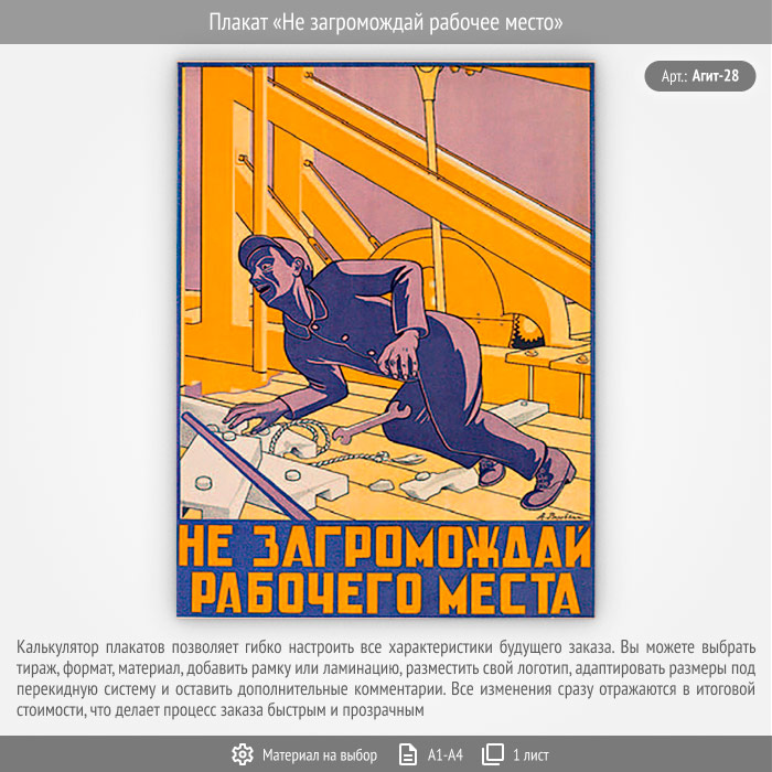 Плакат «Не загромождай рабочее место» (Агит-28, 1 лист) в Великом Новгороде купить