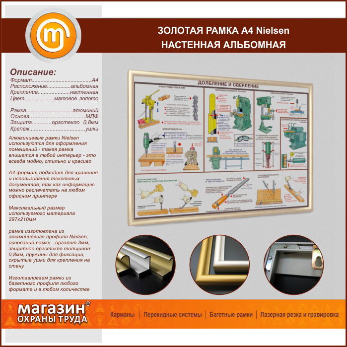 Багетная настенная рамка «Nielsen» А4 формата, альбомная, матовое золото в Великом Новгороде купить