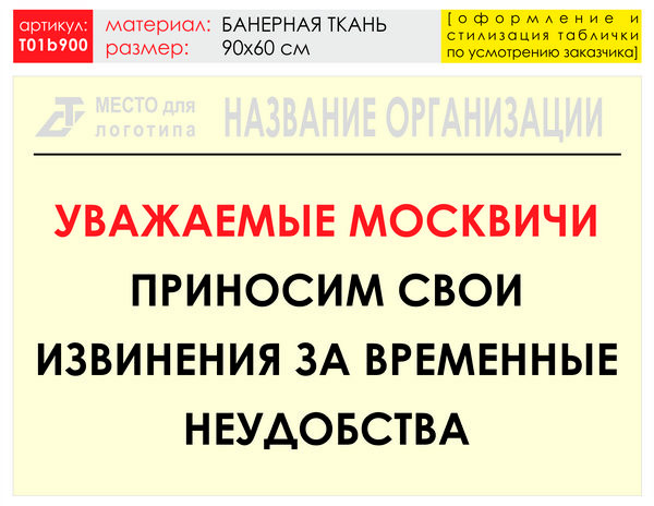 Баннер «Извинения», T01 (баннерная ткань, 90х60 см) в Великом Новгороде купить