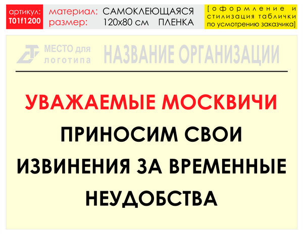 Баннер «Извинения», T01 (самоклеящаяся плёнка, 120х90 см) в Великом Новгороде купить