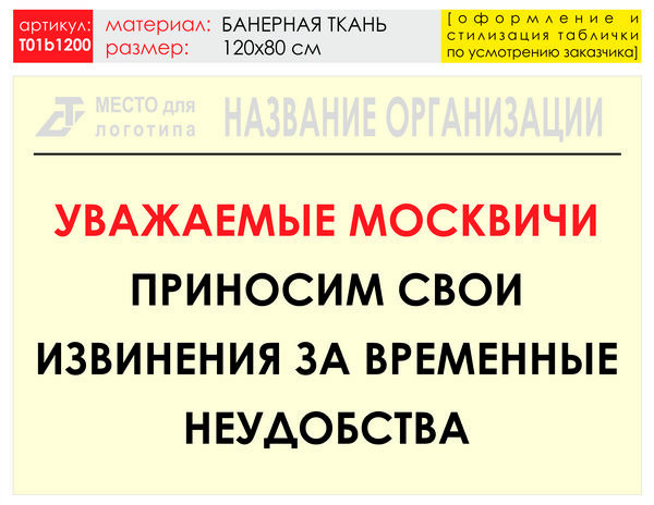 Баннер «Извинения», T01 (баннерная ткань, 120х90 см) в Великом Новгороде купить