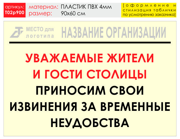 Баннер «Извинения», T02 (пластик 4 мм, 90х60 см) в Великом Новгороде купить