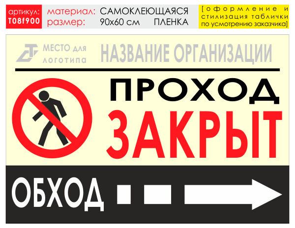 Баннер «Обход справа», T08 (самоклеящаяся плёнка, 90х60 см) в Великом Новгороде купить