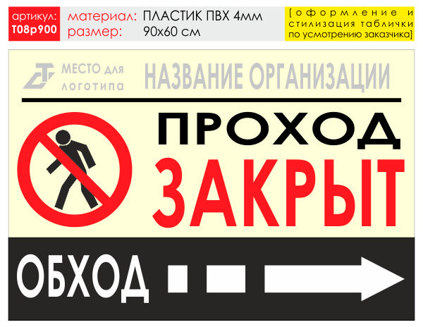 Баннер «Обход справа», T08 (пластик 4 мм, 90х60 см) в Великом Новгороде купить