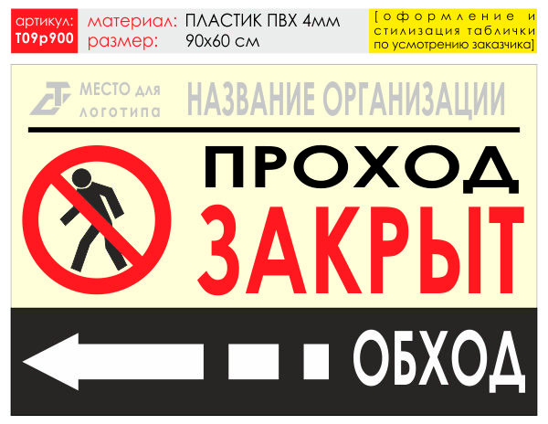 Баннер «Обход слева», T09 (пластик 4 мм, 90х60 см) в Великом Новгороде купить