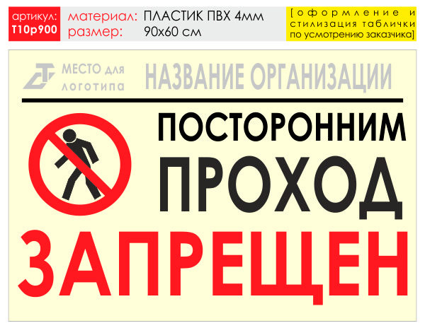 Баннер «Проход запрещен», T10 (пластик 4 мм, 90х60 см) в Великом Новгороде купить
