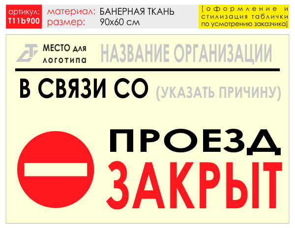 Баннер «Проезд закрыт», T11 (баннерная ткань, 90х60 см) в Великом Новгороде купить