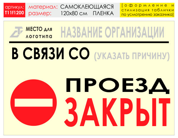 Баннер «Проезд закрыт», T11 (самоклеящаяся плёнка, 120х90 см) в Великом Новгороде купить