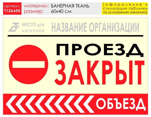 Баннер «Объезд слева», T12 (баннерная ткань, 60х40 см) в Великом Новгороде купить