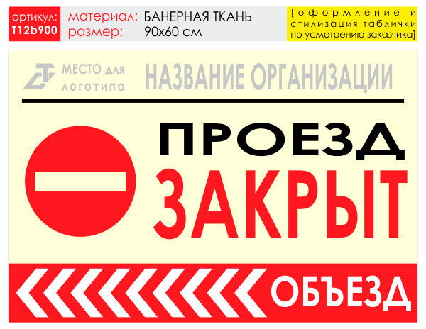 Баннер «Объезд слева», T12 (баннерная ткань, 90х60 см) в Великом Новгороде купить