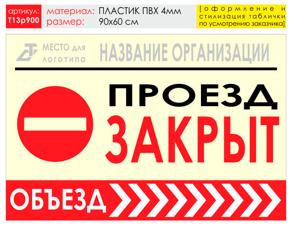Баннер «Объезд справа», T13 (пластик 4 мм, 90х60 см) в Великом Новгороде купить