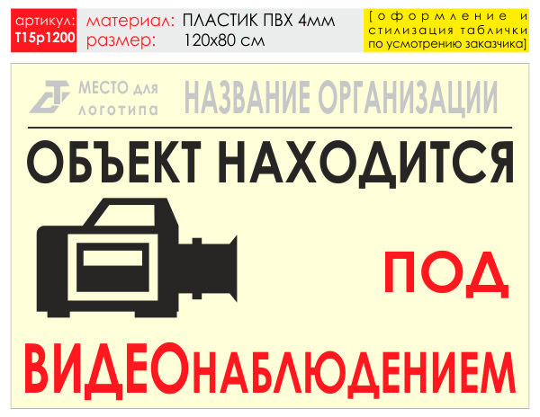Баннер «Видеонаблюдение», T15 (пластик 4 мм, 120х90 см) в Великом Новгороде купить