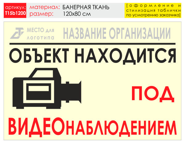 Баннер «Видеонаблюдение», T15 (баннерная ткань, 120х90 см) в Великом Новгороде купить