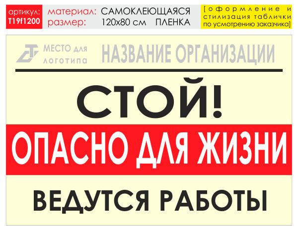 Баннер «Опасно для жизни», T19 (самоклеящаяся плёнка, 120х90 см) в Великом Новгороде купить