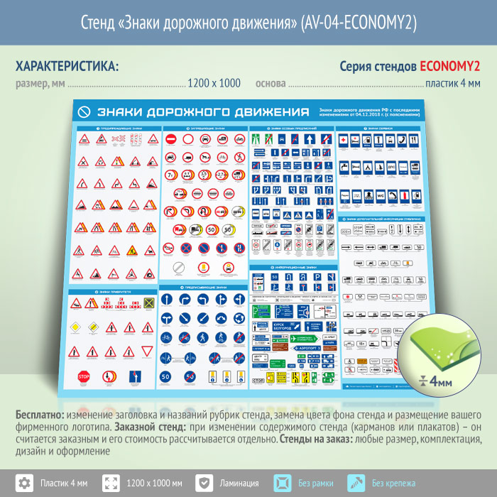 Стенд «Знаки дорожного движения» (AV-04-ECONOMY2) в Великом Новгороде купить