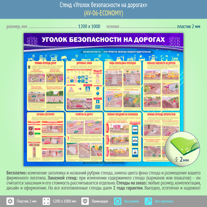 Стенд «Уголок безопасности на дорогах» (AV-06-ECONOMY) в Великом Новгороде купить