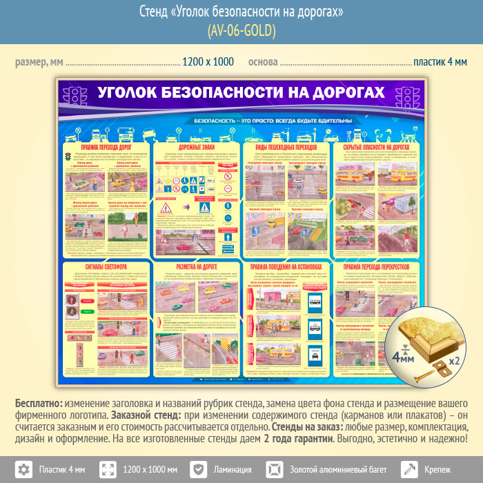 Стенд «Уголок безопасности на дорогах» (AV-06-GOLD) в Великом Новгороде купить