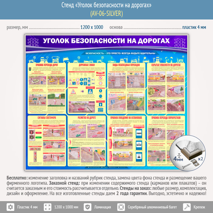 Стенд «Уголок безопасности на дорогах» (AV-06-SILVER) в Великом Новгороде купить
