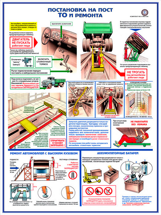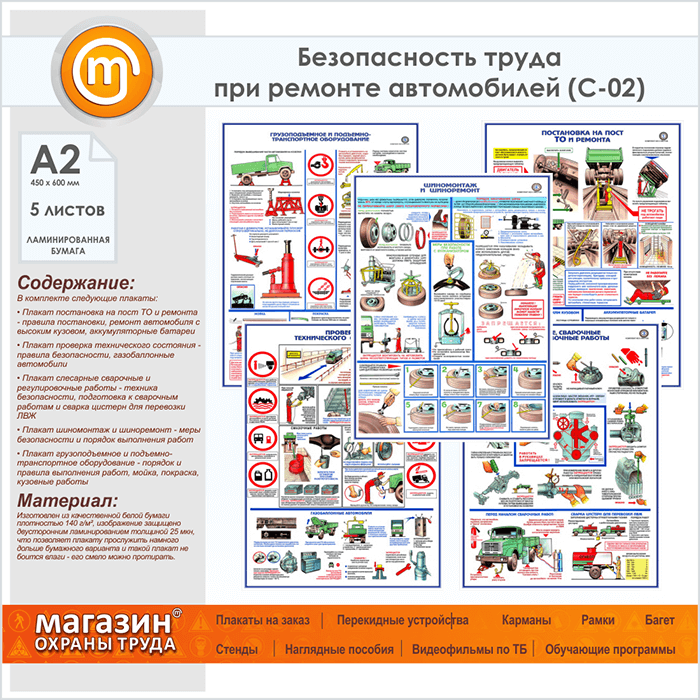 Плакат «Техника безопасности при ремонте автомобилей» (С-02, ламинированная бумага, А2, 5 листов) в Великом Новгороде купить