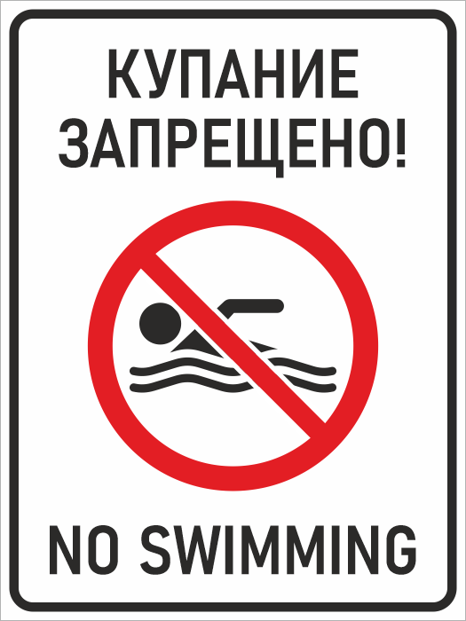 Знак «Купание запрещено! / No swimming», БВ-13 (металл, 300х400 мм) в Великом Новгороде купить