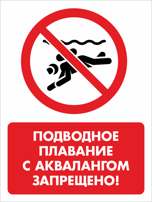 Знак «Подводное плавание с аквалангом запрещено!», БВ-38 (пластик 2 мм, 300х400 мм) в Великом Новгороде купить