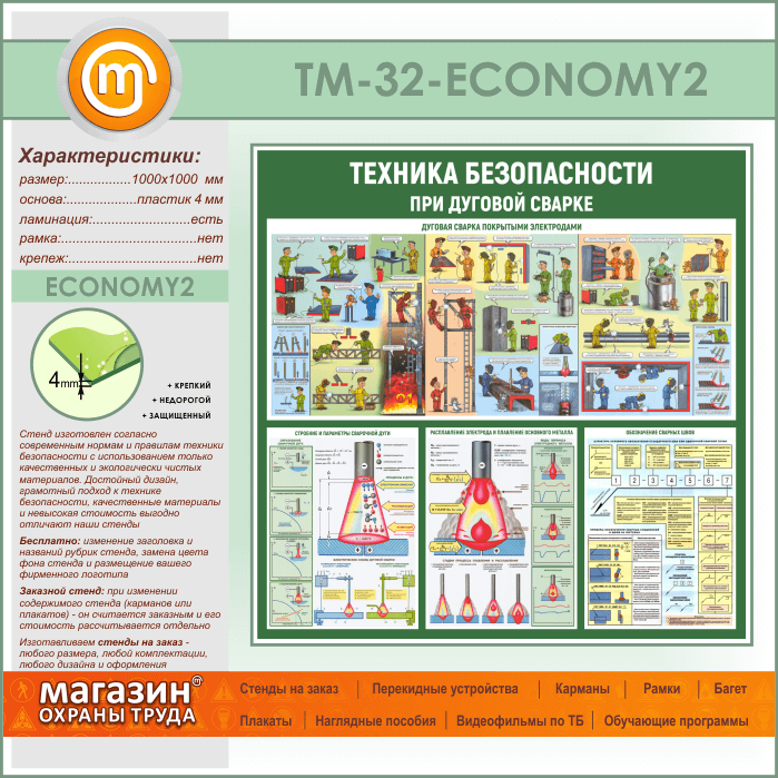 Стенд «Техника безопасности при дуговой сварке» (TM-32-ECONOMY2) в Великом Новгороде купить