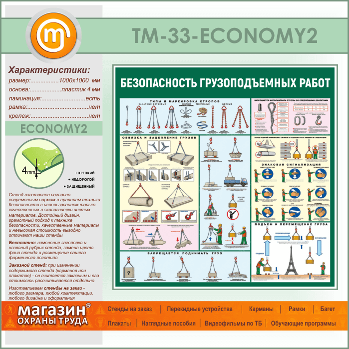 Стенд «Безопасность грузоподъемных работ» (TM-33-ECONOMY2) в Великом Новгороде купить