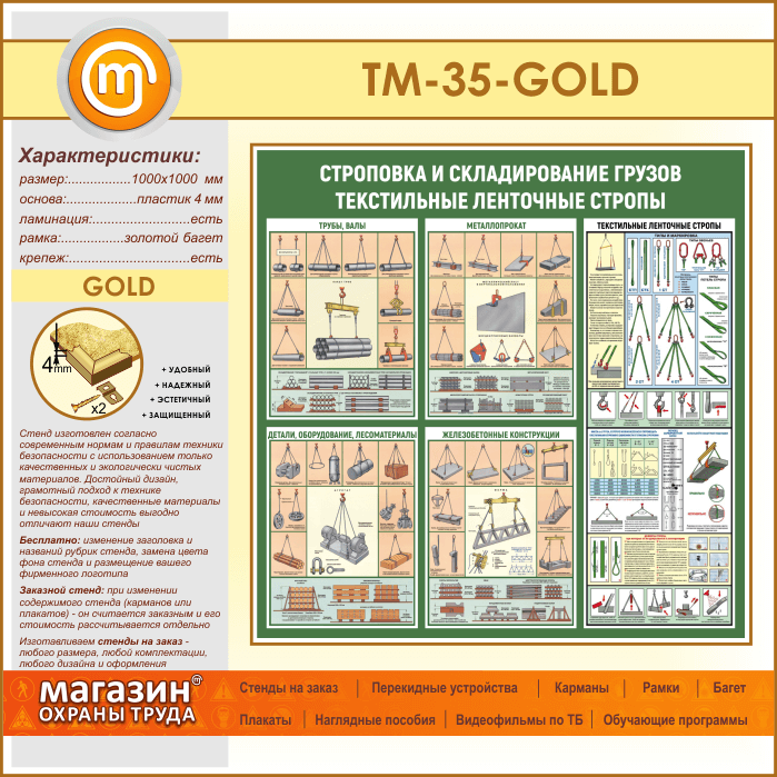 Стенд «Строповка и складирование грузов. Текстильные ленточные стропы» (TM-35-GOLD) в Великом Новгороде купить