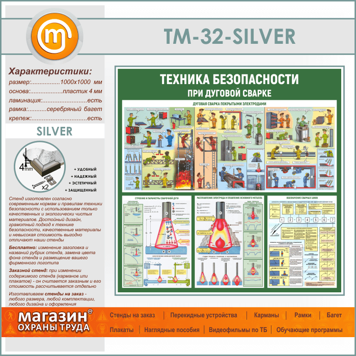 Стенд «Техника безопасности при дуговой сварке» (TM-32-SILVER) в Великом Новгороде купить