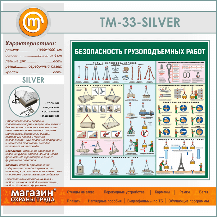 Стенд «Безопасность грузоподъемных работ» (TM-33-SILVER) в Великом Новгороде купить