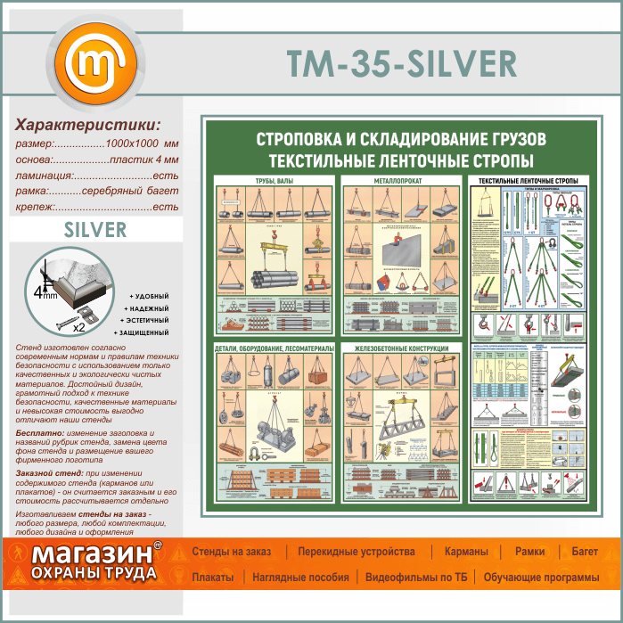 Стенд «Строповка и складирование грузов. Текстильные ленточные стропы» (TM-35-SILVER) в Великом Новгороде купить