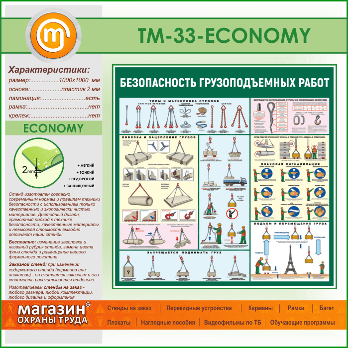 Стенд «Безопасность грузоподъемных работ» (TM-33-ECONOMY) в Великом Новгороде купить