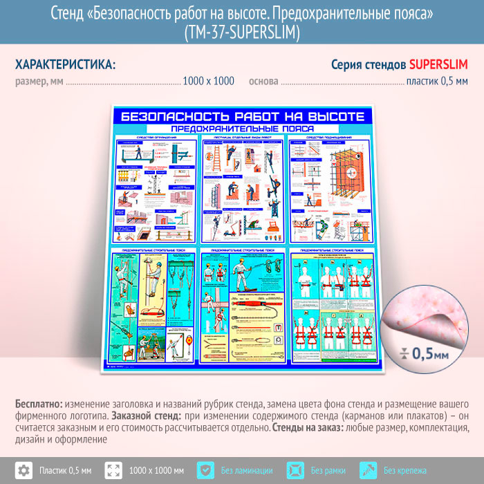 Стенд «Безопасность работ на высоте. Предохранительные пояса» (TM-37-SUPERSLIM) в Великом Новгороде купить