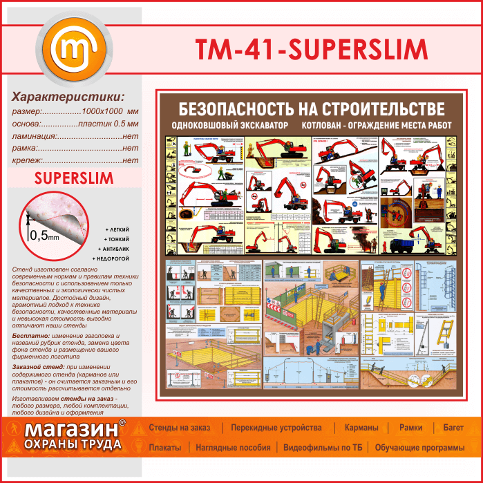 Стенд «Безопасность земляных работ. Экскаватор, котлован» (TM-41-SUPERSLIM) в Великом Новгороде купить