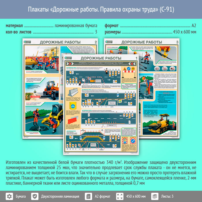 Плакаты «Дорожные работы. Правила охраны труда» (С-91, ламинированная бумага, А2, 3 листа) в Великом Новгороде купить