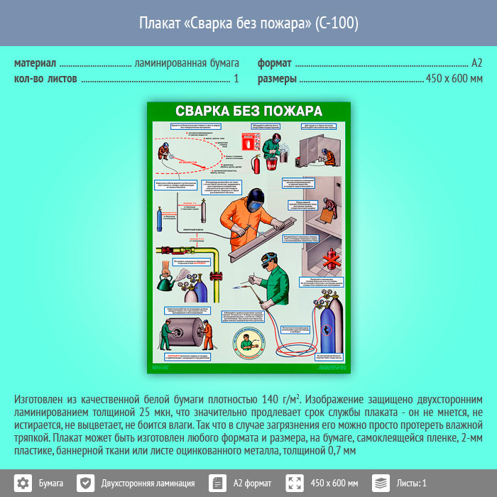 Плакат «Сварка без пожара» (С-100, ламинированная бумага, А2, 1 лист) в Великом Новгороде купить