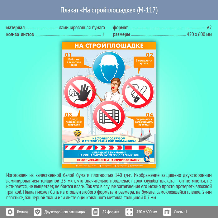 Плакат «На стройплощадке» (М-117, ламинированная бумага, А2, 1 лист) в Великом Новгороде купить