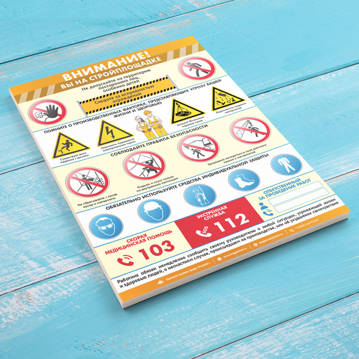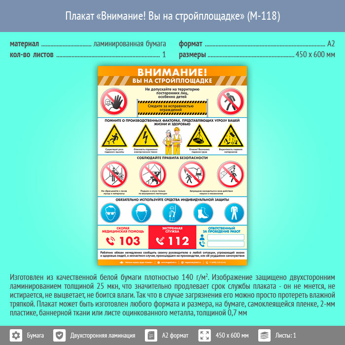 Плакат «Внимание! Вы на стройплощадке» (М-118, ламинированная бумага, А2, 1 лист) в Великом Новгороде купить
