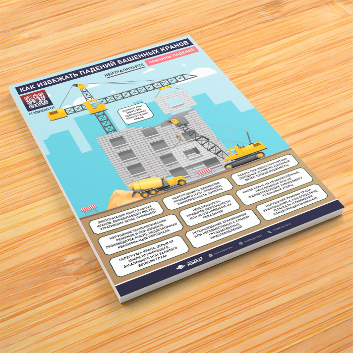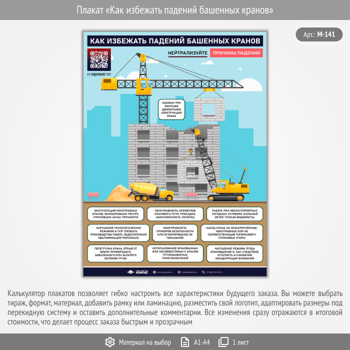 Плакат «Как избежать падений башенных кранов» с QR (М-141, 1 лист) в Великом Новгороде купить