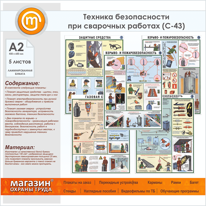 Плакаты «Техника безопасности при сварочных работах» (С-43, ламинированная бумага, А2, 5 листов) в Великом Новгороде купить
