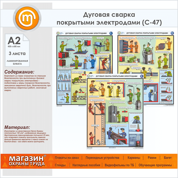 Плакаты «Дуговая сварка покрытыми электродами» (С-47, ламинированная бумага, А2, 3 листа) в Великом Новгороде купить