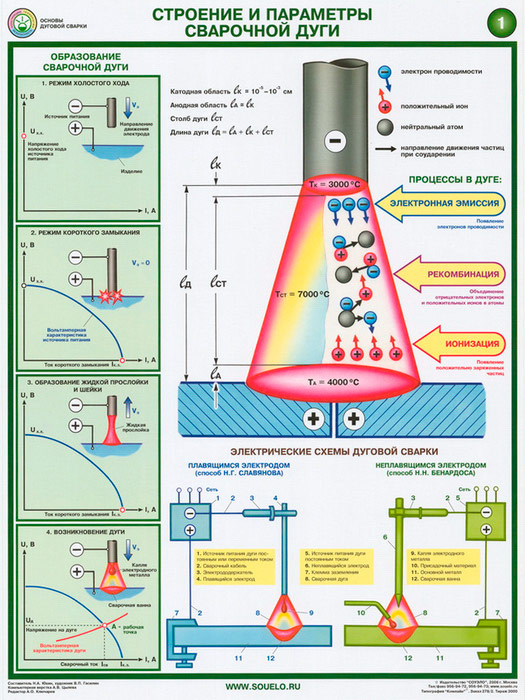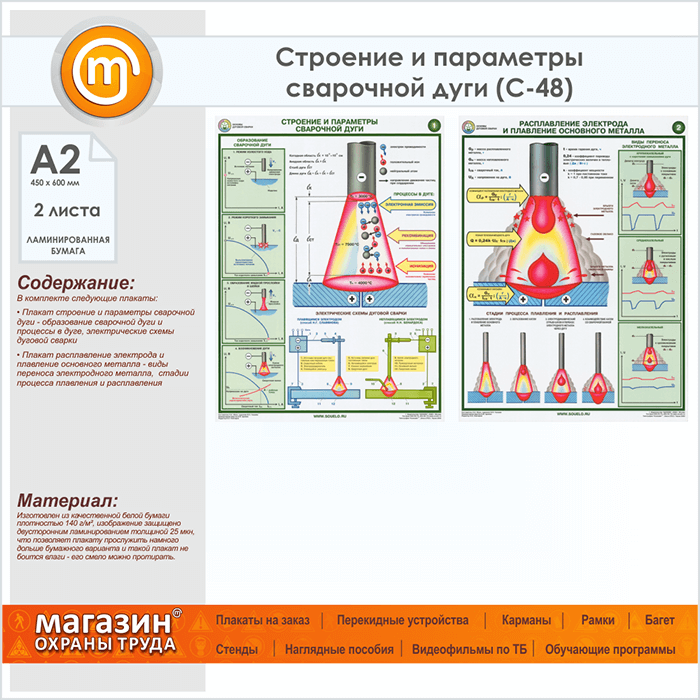 Плакаты «Строение и параметры сварочной дуги» (С-48, ламинированная бумага, А2, 2 листа) в Великом Новгороде купить