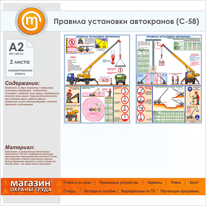 Плакаты «Правила установки автокранов» (С-58, ламинированная бумага, А2, 2 листа) в Великом Новгороде купить