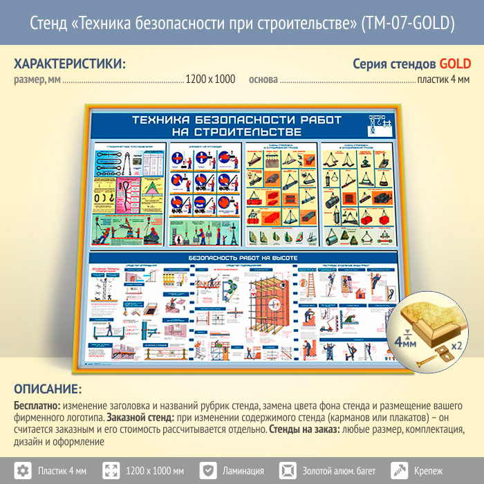 Стенд «Техника безопасности при строительстве» (TM-07-GOLD) в Великом Новгороде купить