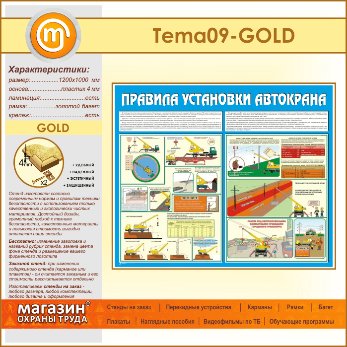 Стенд «Правила установки автокранов» (TM-09-GOLD) в Великом Новгороде купить