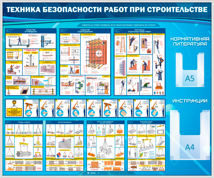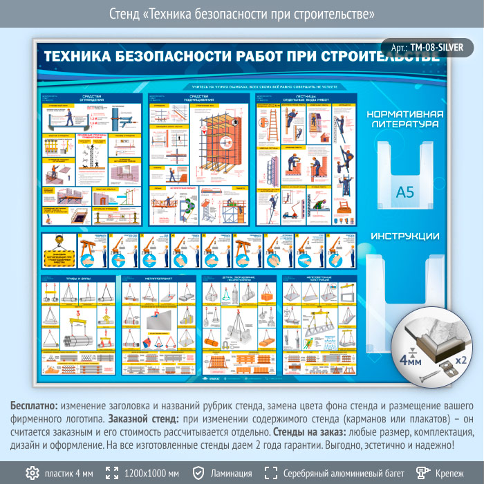 Стенд «Техника безопасности при строительстве» с 2 объемными карманами (TM-08-SILVER) в Великом Новгороде купить