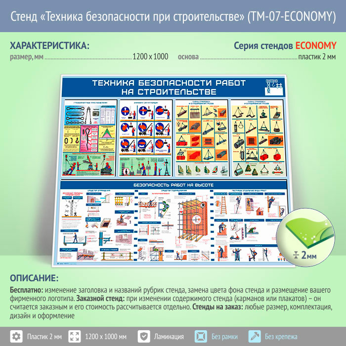 Стенд «Техника безопасности при строительстве» (TM-07-ECONOMY) в Великом Новгороде купить