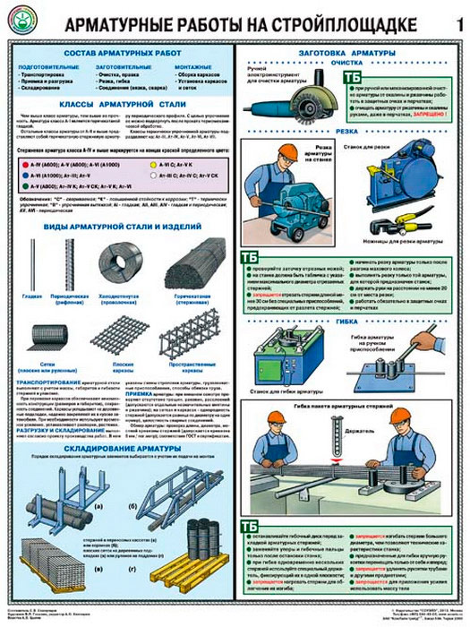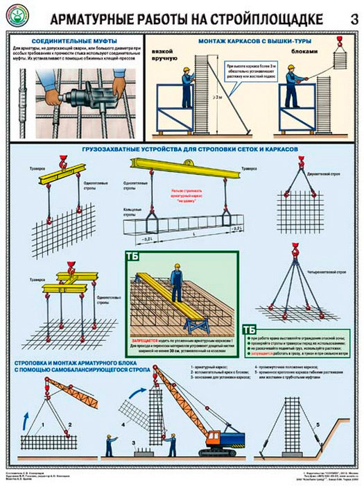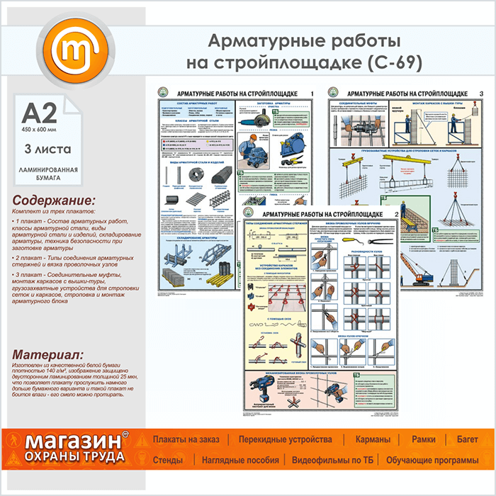 Плакаты «Арматурные работы на стройплощадке» (С-69, ламинированная бумага, А2, 3 листа) в Великом Новгороде купить