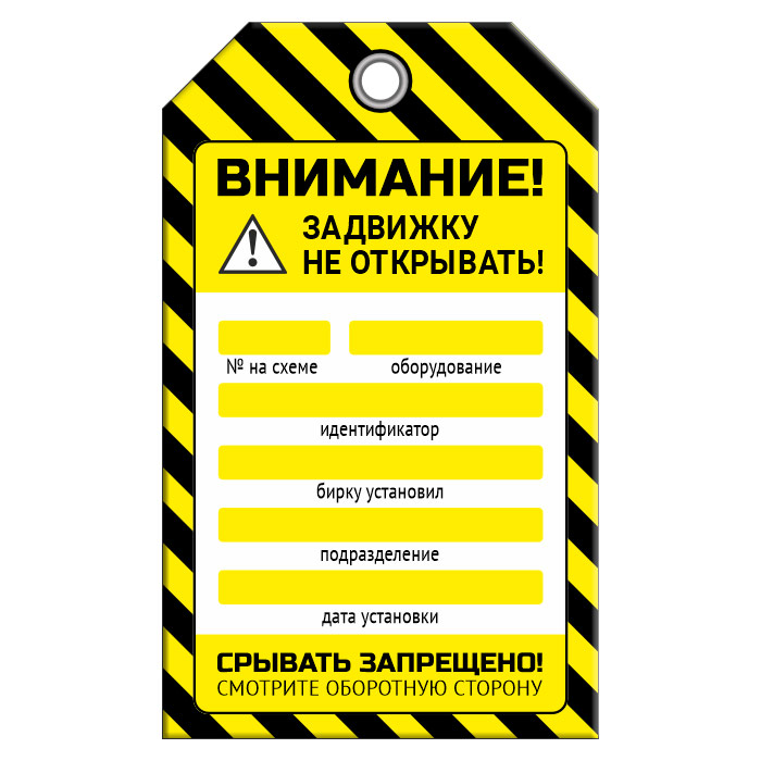Бирка «ЗАДВИЖКУ НЕ ОТКРЫВАТЬ!» (1 шт., двусторонняя, пластик, 70х115 мм) в Великом Новгороде купить